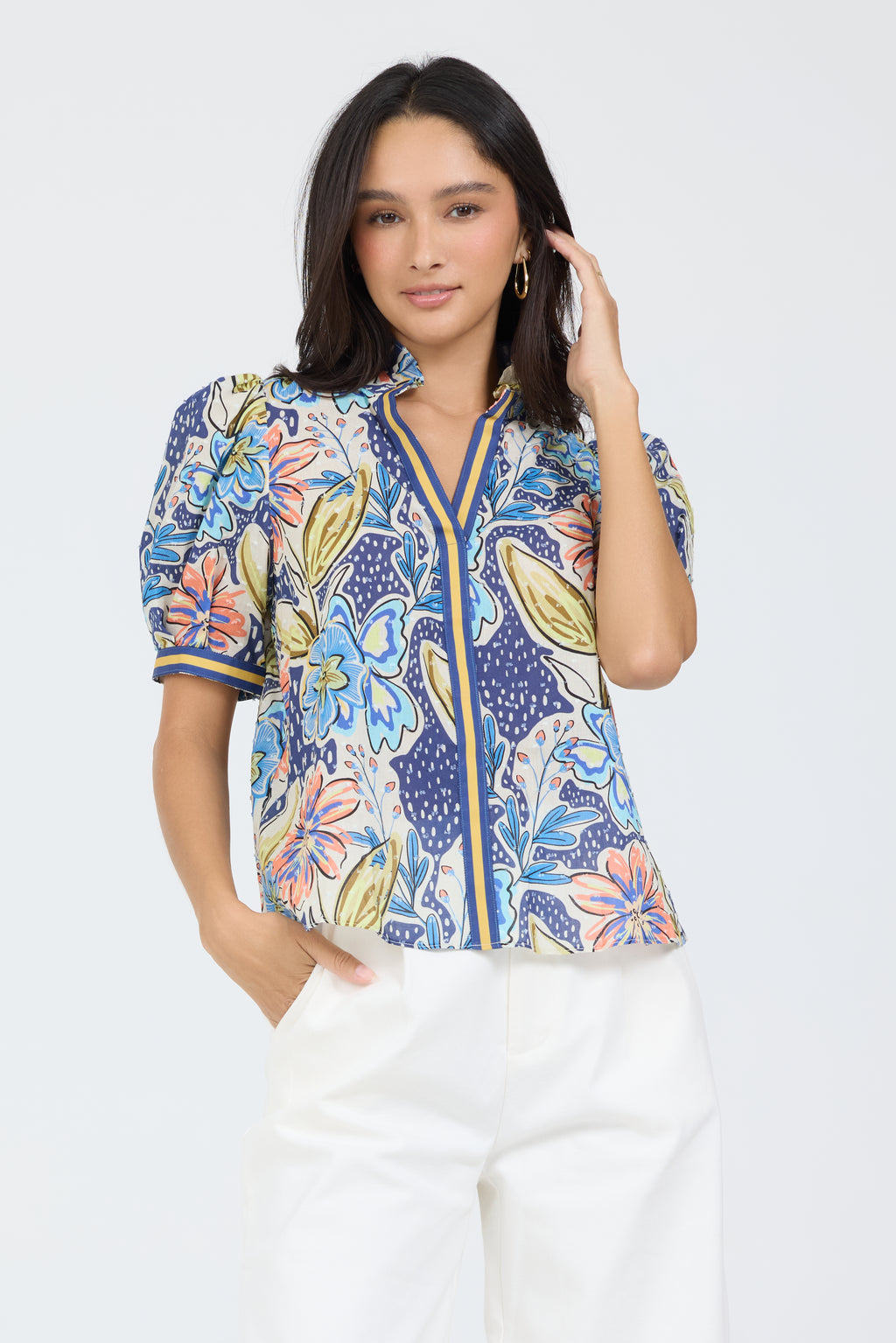 Puff sleeve print top.