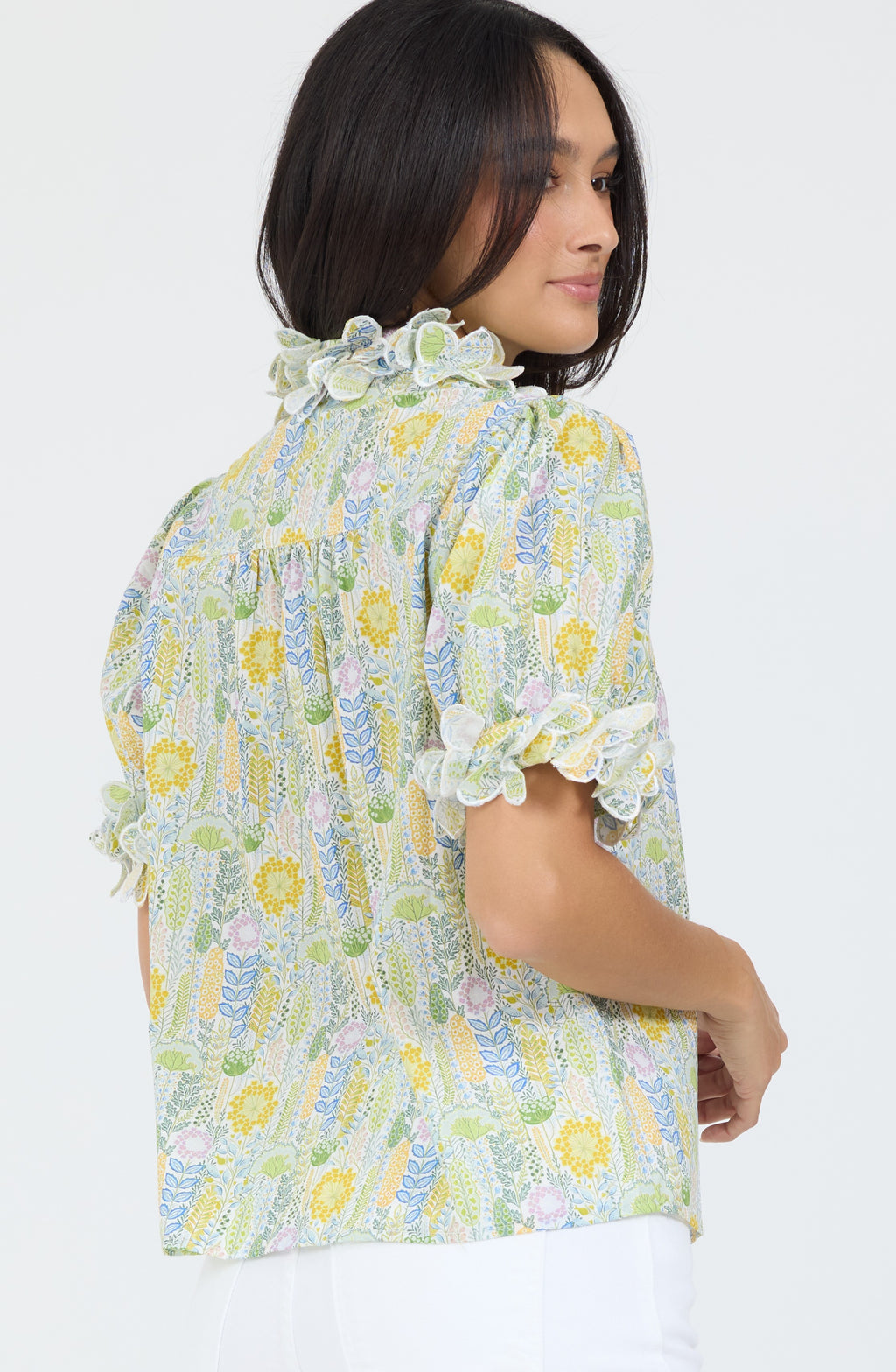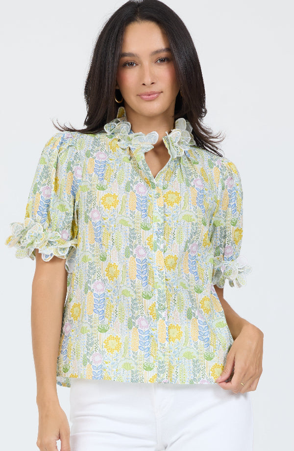 Puff sleeve button down shirt.