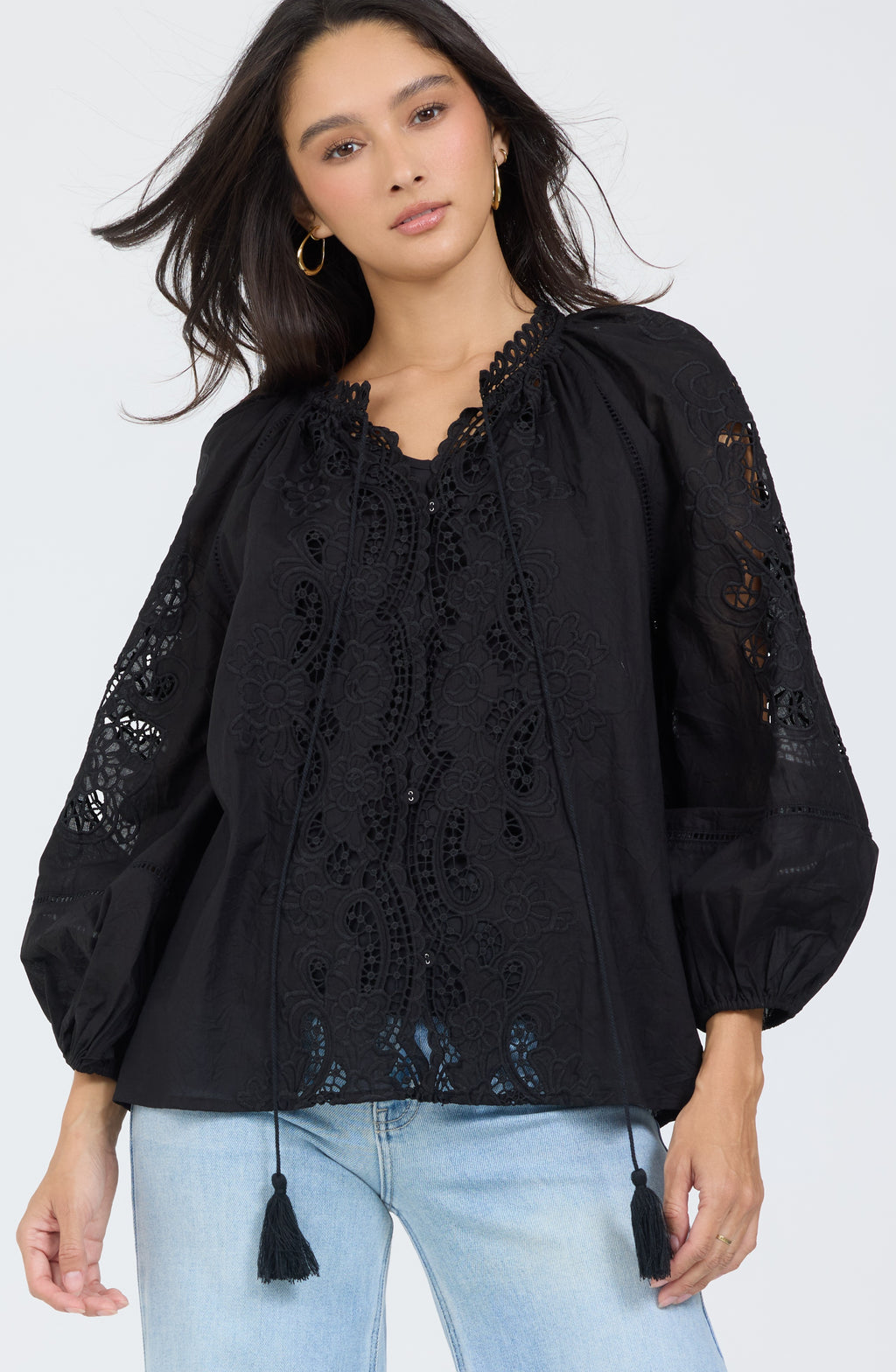 Cut-out embroidered boho top.